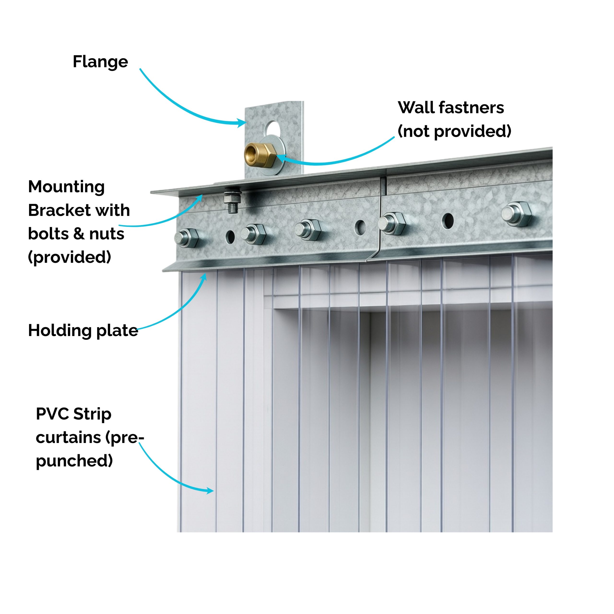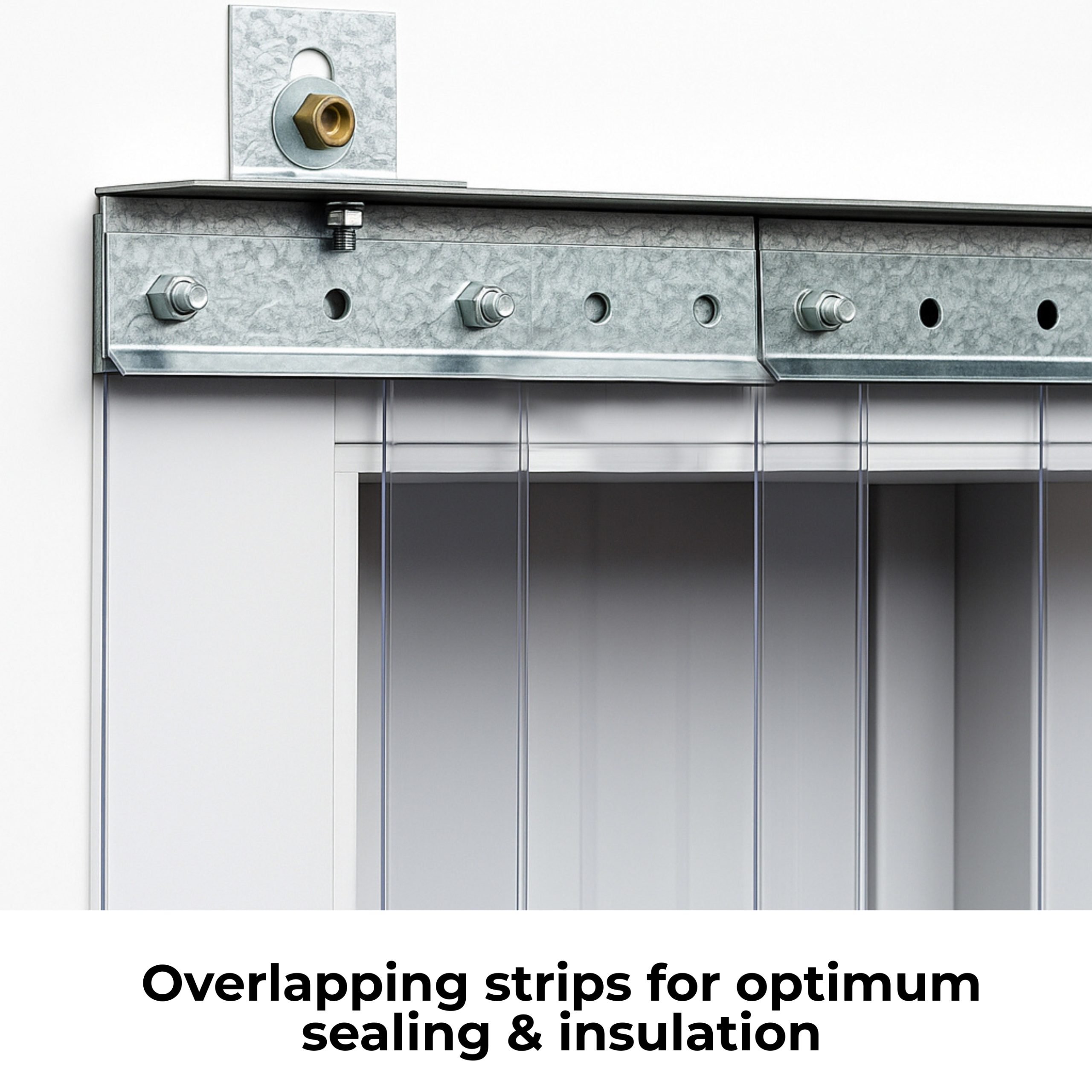Standard Clear or Colour PVC strips with Galvanised bracket complete and ready to hang for immediate installation